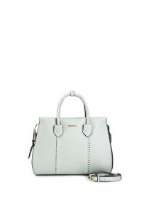 handbag with buckles, two-tone mini rivets and removable shoulder strap sage