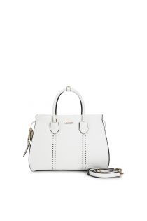 handbag with buckles, two-tone mini rivets and removable shoulder strap white