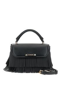 handbag with flap and fringes black