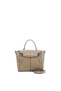 Handbag with flap in grainy material and suede effect on the front. metal logo plate and knot detail on the front of the bag. magnetic closure. removable shoulder strap.
