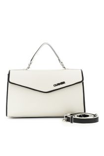 Elegant handbag with a structured flap padded handle for a comfortable grip and a functional back pocket. a painted metal logo and removable shoulder strap make for a versatile day-to-night style. dimensions: 30 cm (length) × 18 cm (height) × 8 cm (depth)