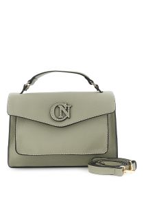handbag with flap with grained leather effect and flap with stitched logo sage