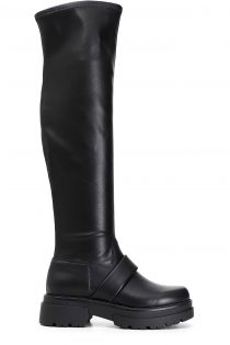 High-heeled, over-the-knee boots with stretch shaft and padded front loop