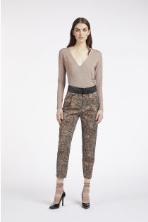 high-waisted trousers in jacquard fabric