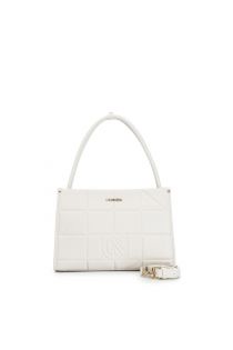 hobo bag with embossed, quilted effect with geometrical pattern. cream