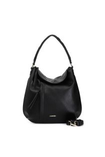 hobo bag with pocket and zip, threaded handle black
