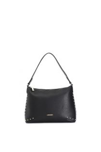 Hobo bag with side and corner rivets. top fastening with zipper. bag equipped with a handy compartment and a zipped pocket.
