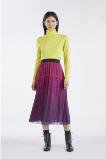 Pleated skirt in a lively printed fil coupé fabric that releases iridescent light points.