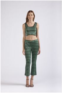 Short top with round neckline. made of jacquard fabric with a geometric design.