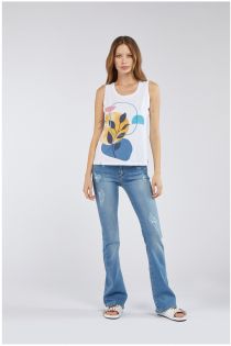 Elasticated cotton jersey tank top with a multi-technique placed print and embroidery on the front