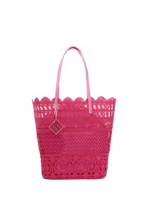 Lace shopper with cotton inner pouch. leather-effect handles and tone-on-tone pendant. perfect to bring colour to any summer look.