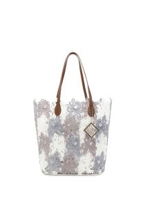 Shopping bag made in lace with contrasting handles and inner bag perfect to add colour to any summer look.