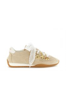Women's lace-up running shoes in perforated suede. lace laces and removable gold nautical-themed charms. fabric lining leather insole 2 cm rubber sole. playful and ultra-glamorous look.