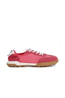 Lace-up sneakers in nylon fabric and suede. customization with logo and rhinestones on the back. leather insole. lightweight flexible shoe with a functional style. these sneakers will accompany you both during training and in the city on busy days.