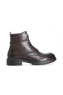 Men's leather lace-up ankle boot. the upper is characterised by ornamental stitching. the insole is leather.