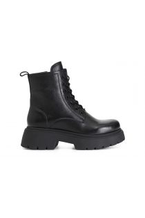 Women's leather lace-up ankle boot. 35mm heel. leather insole. lug sole.