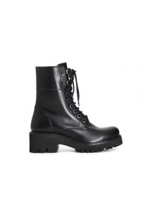 Laced leather ankle boot. 50mm high heel. the insole is in leather.