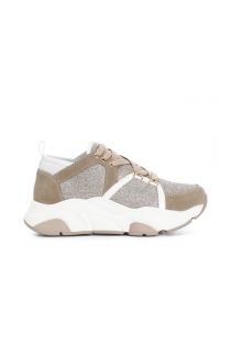 Suede and glitter fabric running shoe with leather insole perfect for giving your feet a break on busy days.