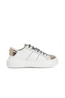 Women's sneakers with glitter and mirror details on the reinforced heel and patterned lace-up. the insole is leather.