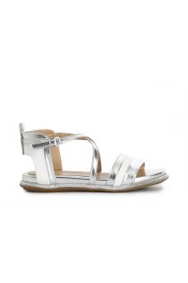 laminated faux cross strappy sandals multi silver