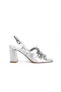 Laminated leather sandals with square toe. strap with adjustable buckle. upper lining and insole are in leather. 8.5 cm high wide heel. elegant stylish and formal shoe.