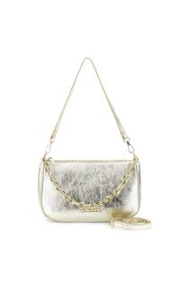 laminated leather shoulder bag with gold chain handle light gold
