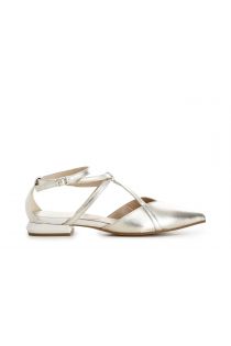 Laminated napa ballet flats with ankle strap and leather-clad heel