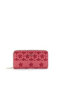 large round zip wallet with nappa effect and san gallo embroidery cherry red