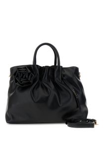 Large soft bag with pleats in nappa-effect material embellished with a matching rose applique. spacious and elegant with structured handles and a removable shoulder strap it's ideal for everyday and evening looks. dimensions: 35 cm (length) × 27 cm (height) × 13 cm (depth)