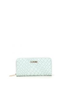 Large zip-around wallet, with irregular braiding and custom logo hardware
