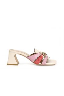 Two-tone leather and suede slides with bit. heel h. 70mm