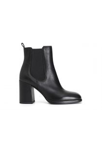 Women's leather ankle boot. elastic on both sides makes it super easy to put on. 85mm squared heel. leather insole.