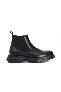 leather ankle boot with elastic black