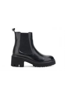 Leather ankle boots with elastic side inserts. Leather lining and insole for optimal comfort. A 6.3 cm heel and lug sole for a bold style.