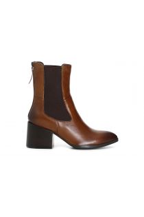 Medium-heeled leather ankle boots. Side stretch panel that makes them easier to put on and zip at the back.