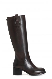 Women's leather boot with ring accessory on the leg. the heel is 50mm high. the insole is leather.
