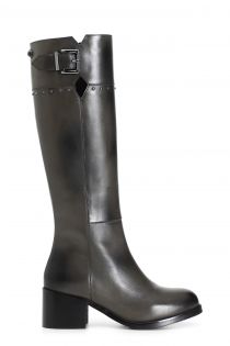 leather boot with buckle and studs grey