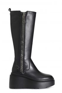 Leather boot with decorated metal zip. heel 70 plateaux 30. internal zip as closure. 70 mm heel and 30 mm platform. the insole is in leather.