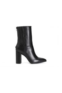 Women's leather ankle boot with concealed stretch panel and zip at the back that makes them easier to put on. 90 mm heel. slender shape and leather insole.