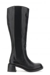 leather boots with elastic black