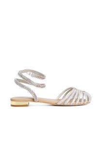 Leather cage sandals with a back reinforced heel and mignon rhinestones. spiral ankle strap.