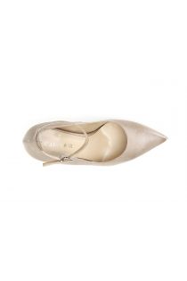 Leather court shoes with ankle string and slim shaped, 7.5 cm high heel