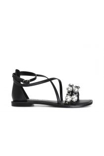 Criss-cross leather jewel sandals closed at the back with a double strap.