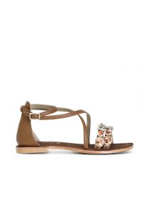Criss-cross leather jewel sandals closed at the back with a double strap.