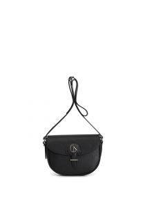Leather bag with flap and cafènoir logo. magnetic closure and adjustable shoulder strap.