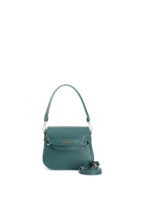 Leather flap with short shoulder strap loop with lettering. magnetic closure. removable shoulder strap.
