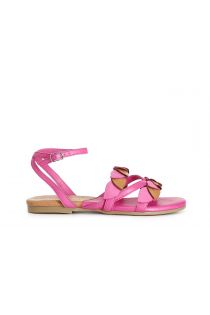 Low leather sandals with double strap gilda model and ankle strap. two-tone front decoration resembling interwoven leaves.