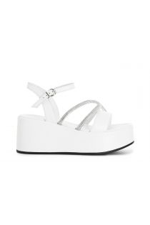 Gilda model sandals with micro-rhinestone strips on a leather-clad wedge.
