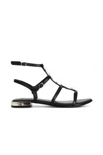 Gladiator-style leather sandals with gold accessory. double adjustable strap.