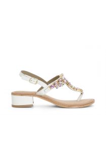 Leather flip-flop with jewel accessory heel h. 35mm.